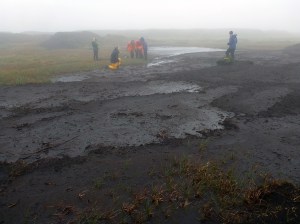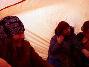 Image: Luce Choules’ very brilliant Terra Nova ‘Voyager’ tent which has accompanied them well on many travels over 20 years and sadly perished on this project – seems the rain of the Pennines finished it off!